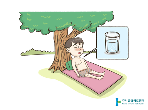 옷을 벗기고 소금이 들어간 찬물이나 이온 음료 또는 일반 찬물을 마셔 수분을 섭취하게 한다.
