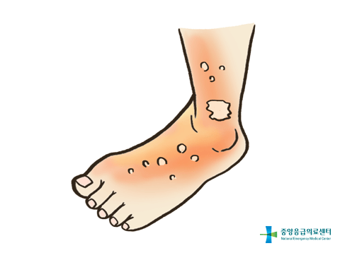 심한 통증과 함께 물집이 생기고 피부가 벗겨지거나 출혈이 생기기도 한다