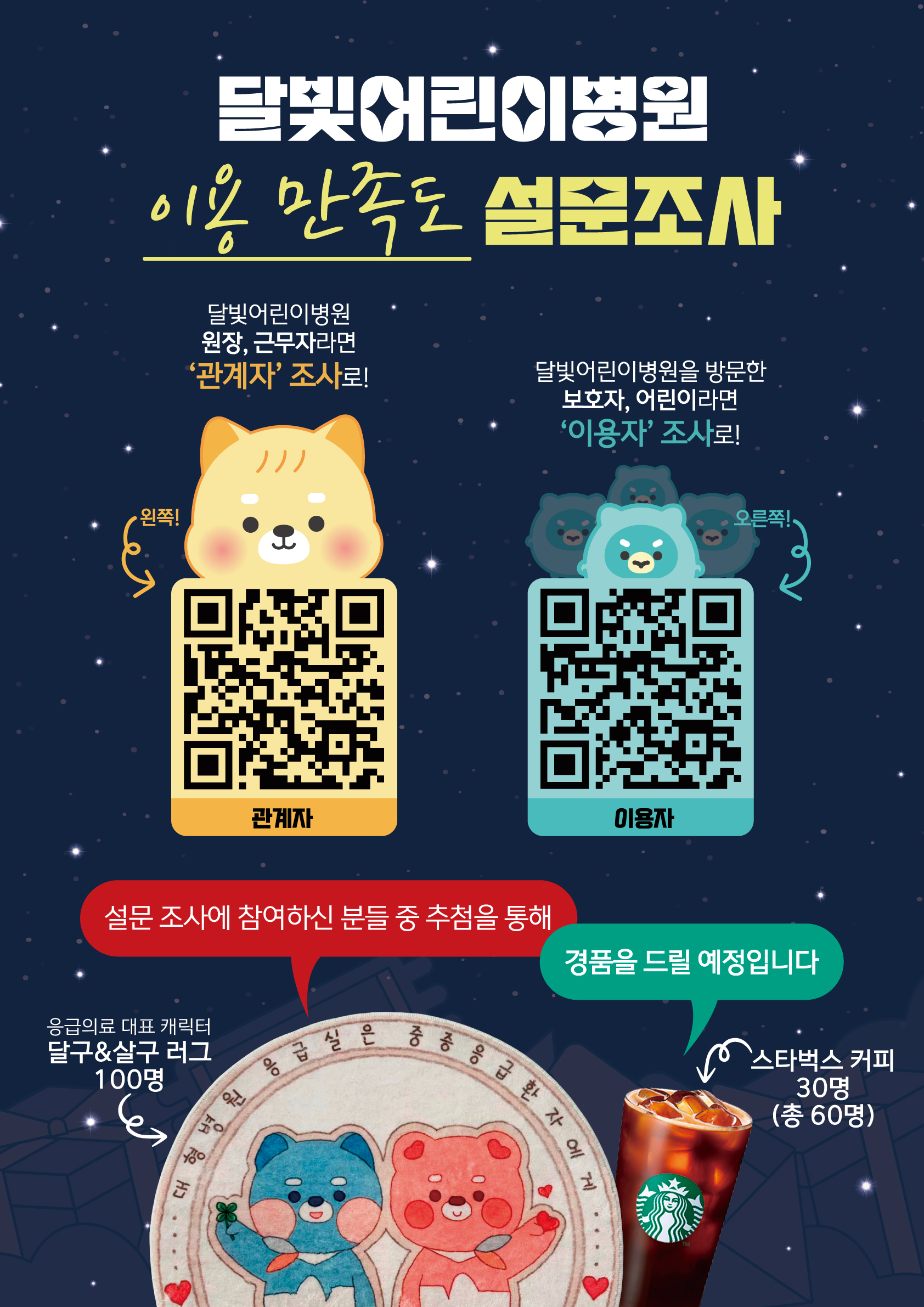 달빛어린이병원 이용만족도 설문조사를 진행하고 있습니다.