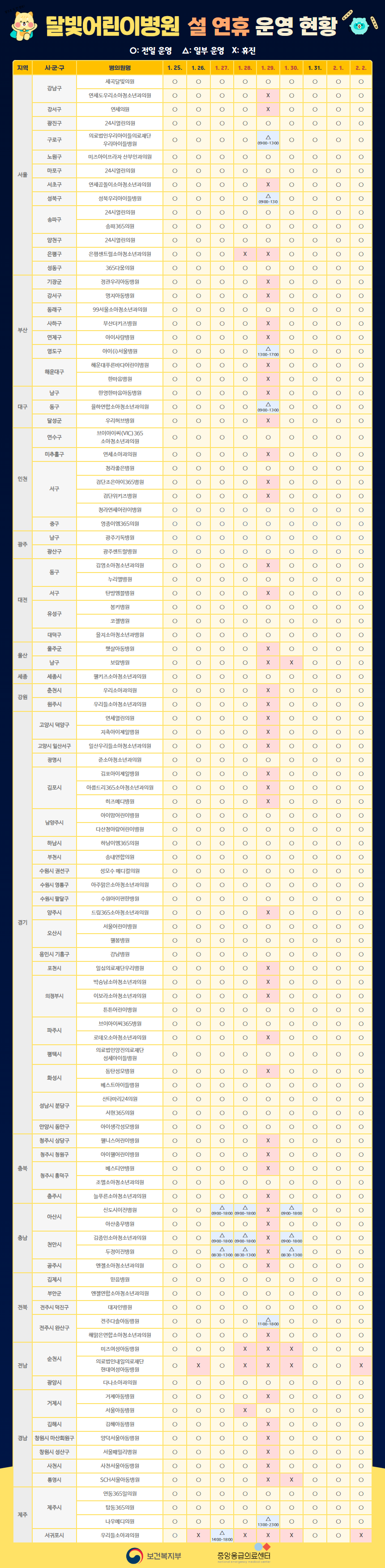 이 정보는 설 연휴 전 제출된 자료를 기반으로 작성된 것이므로, 실제 운영 상황은 다를 수 있습니다.